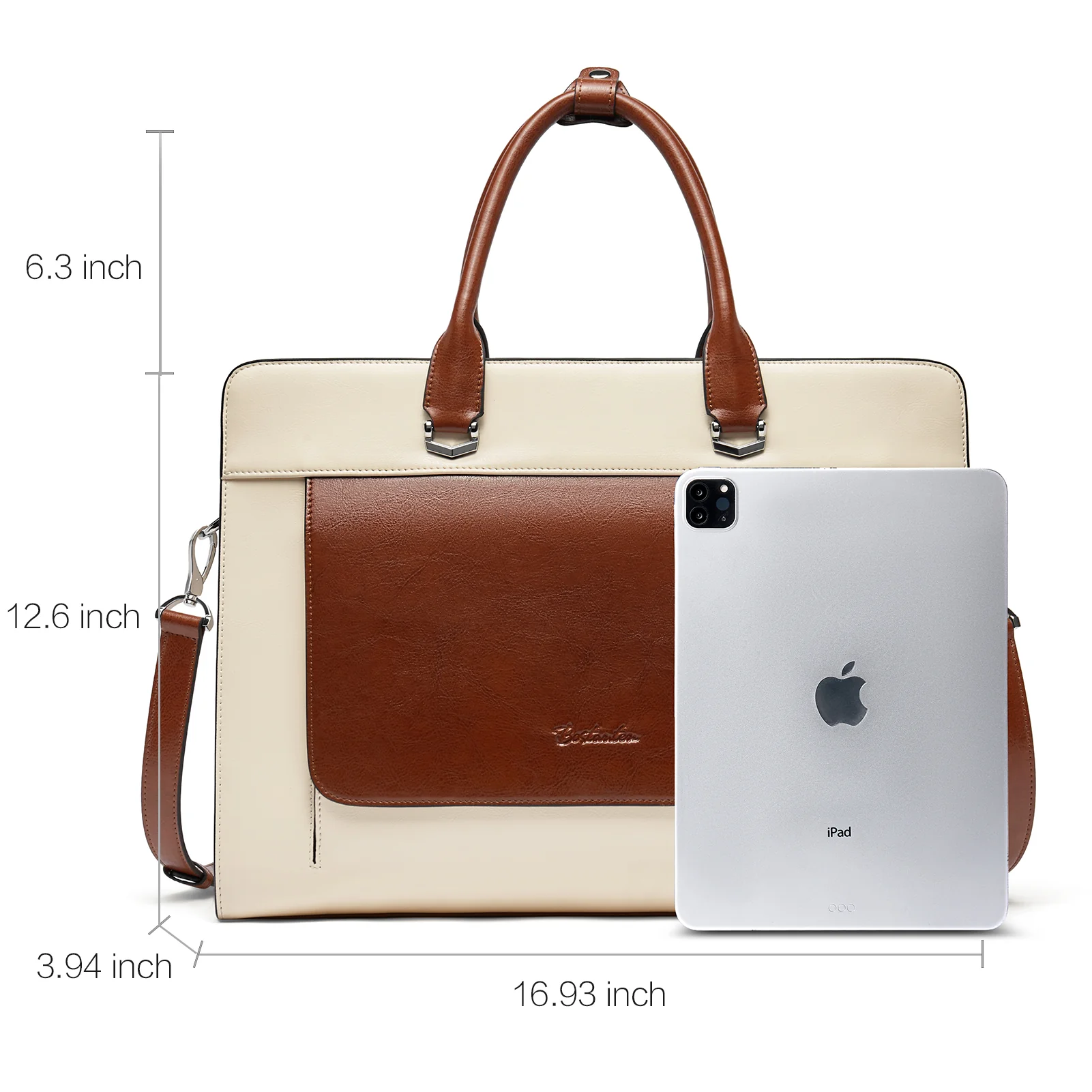 - Specific Size -- (L) 16.14 x (W) 5.12 x (H) 11.42 inches, handle drop is 4.72 inch. Net weight: 3.51lb / 1.59kg. Long shoulder strap is adjustable to your height. Can be used as work bag, laptop bag, lawyers briefcase, executive briefcase, etc. Best gift for business ladies, girlfriend or daughter.