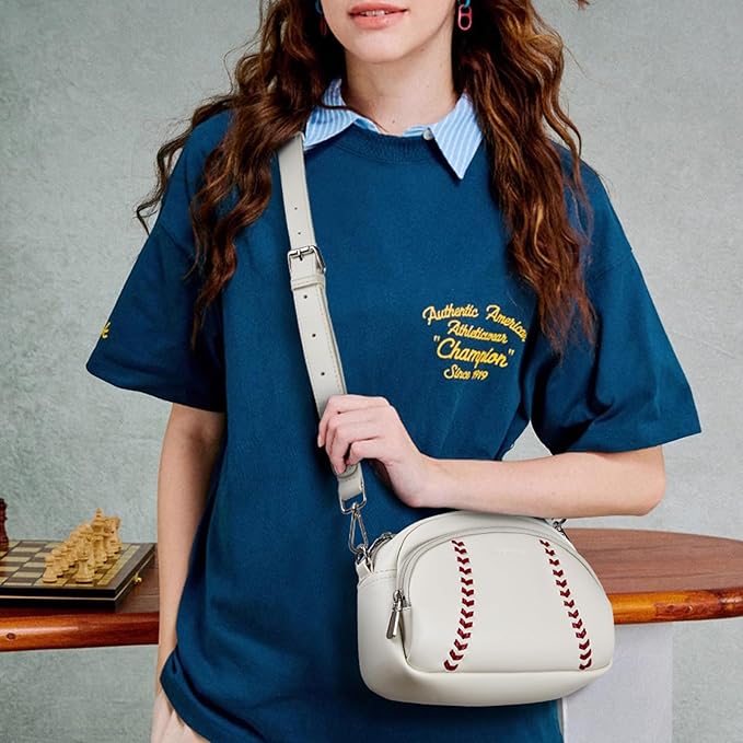 With three-dimensional stitching, it maintains a sleek shape and is designed for durability. The bag includes multiple pockets for easy organization of essentials and has an adjustable strap for versatile wear as a shoulder or crossbody option. Ideal for daily travel, baseball games, or gifting, this purse is perfect for women looking to express their style with a touch of sporty flair.