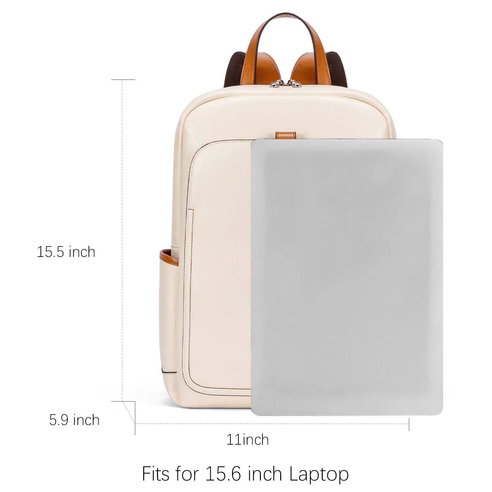 Details: Women Leather Laptop Backpack Purse Casual College Casual Bags Daypack beige color with two main pockets can hold laptop