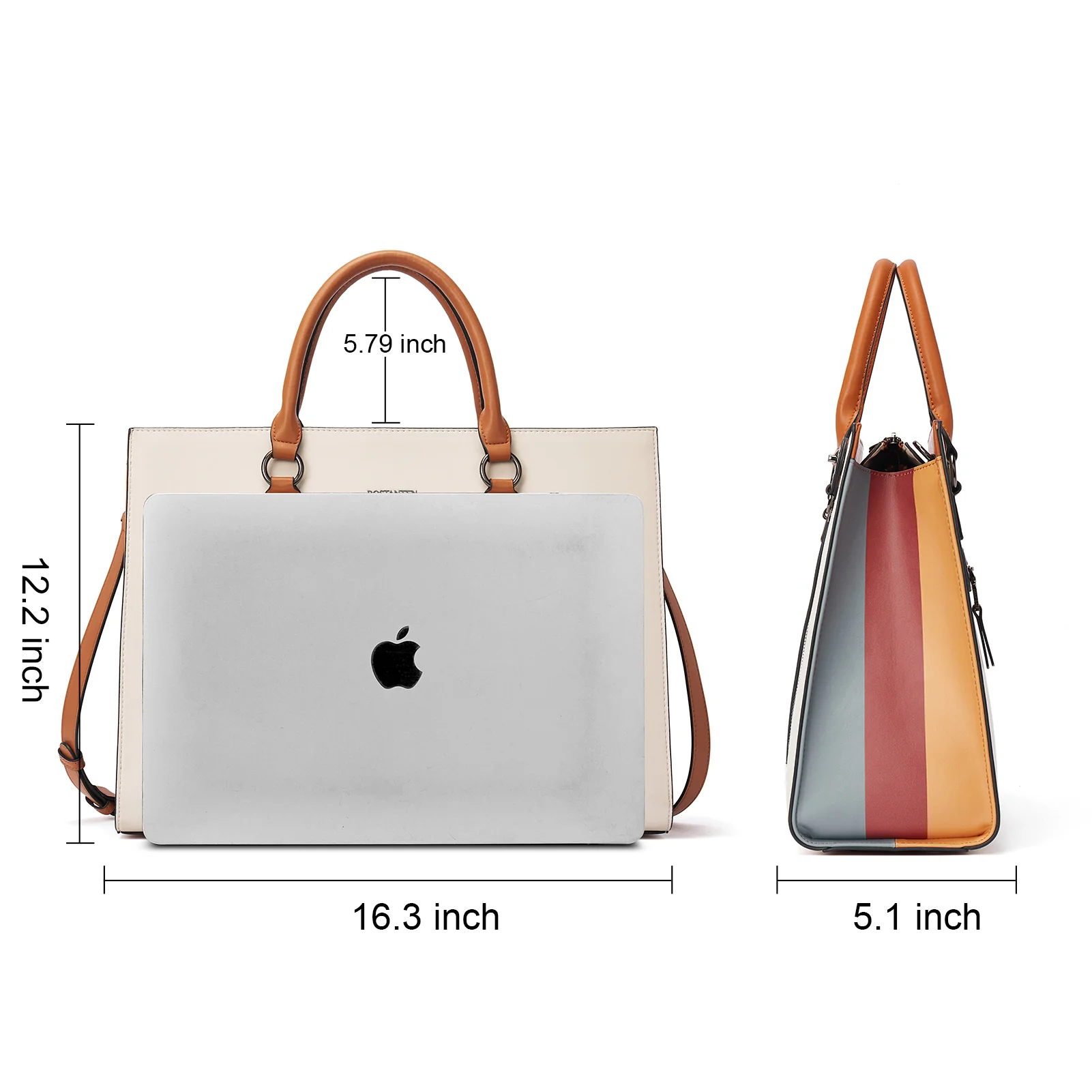 - 【Stylish Design】The colorful elements on the side make this women's briefcase a high fashion sense. Leather top handles are very comfortable for carrying which are specially strengthened by durable metal decoration. This briefcase equipped with an adjustable shoulder strap can be used as a shoulder bag or laptop handbag.