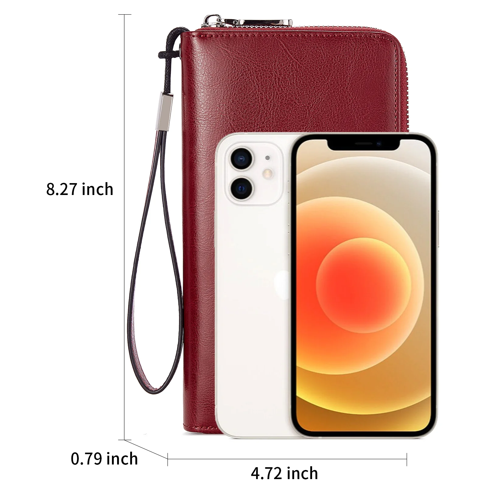 - Structure -- zip around closure. 17 cards slots, 2 bill pockets, 1 ID window slot, 1 inner zipper pocket and 1 removable wristlet. It is a good life helper that can organize well iPhone, cables, ear bugs, bills, credit cards, keys, coins. etc.
