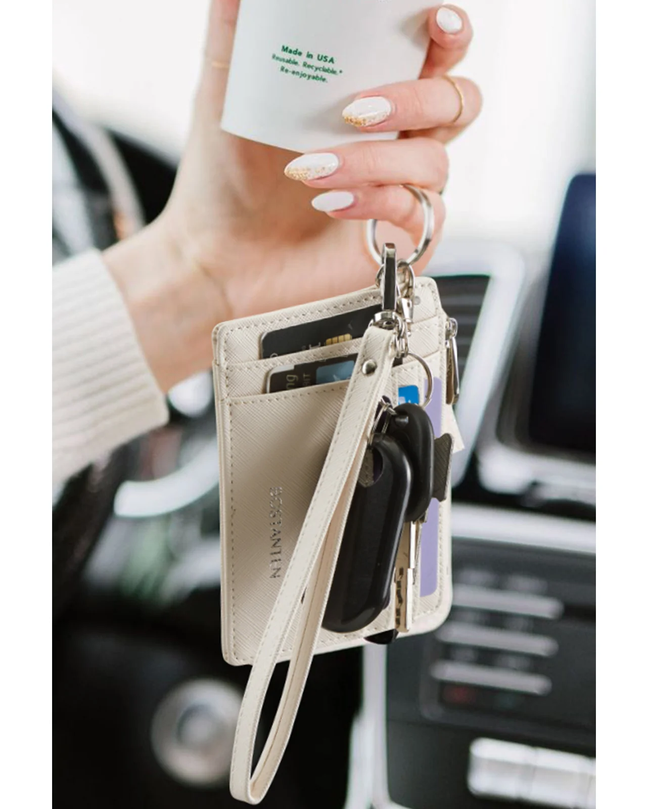 - Save Your Mind: Our card wallet has a hooked wrist strap to help you easily find it and free up your hands. The keychain you attached your keys to it and haven’t misplaced your keys yet one less thing to grab in the morning. So you can quickly throw it in your pocket and run to the store.