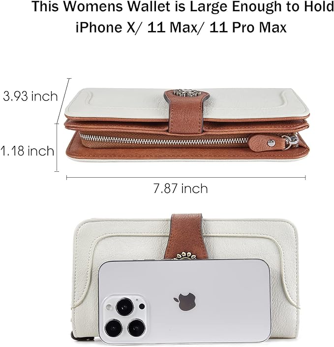 - Unique Features -- Made of high quality leather. Durable zipper and snap for long time use. Each wallets for women comes with a wrist strap, biofold wallet is convenient to use. Sun flower buckle and hollow design are in vintage style and more fashion.
