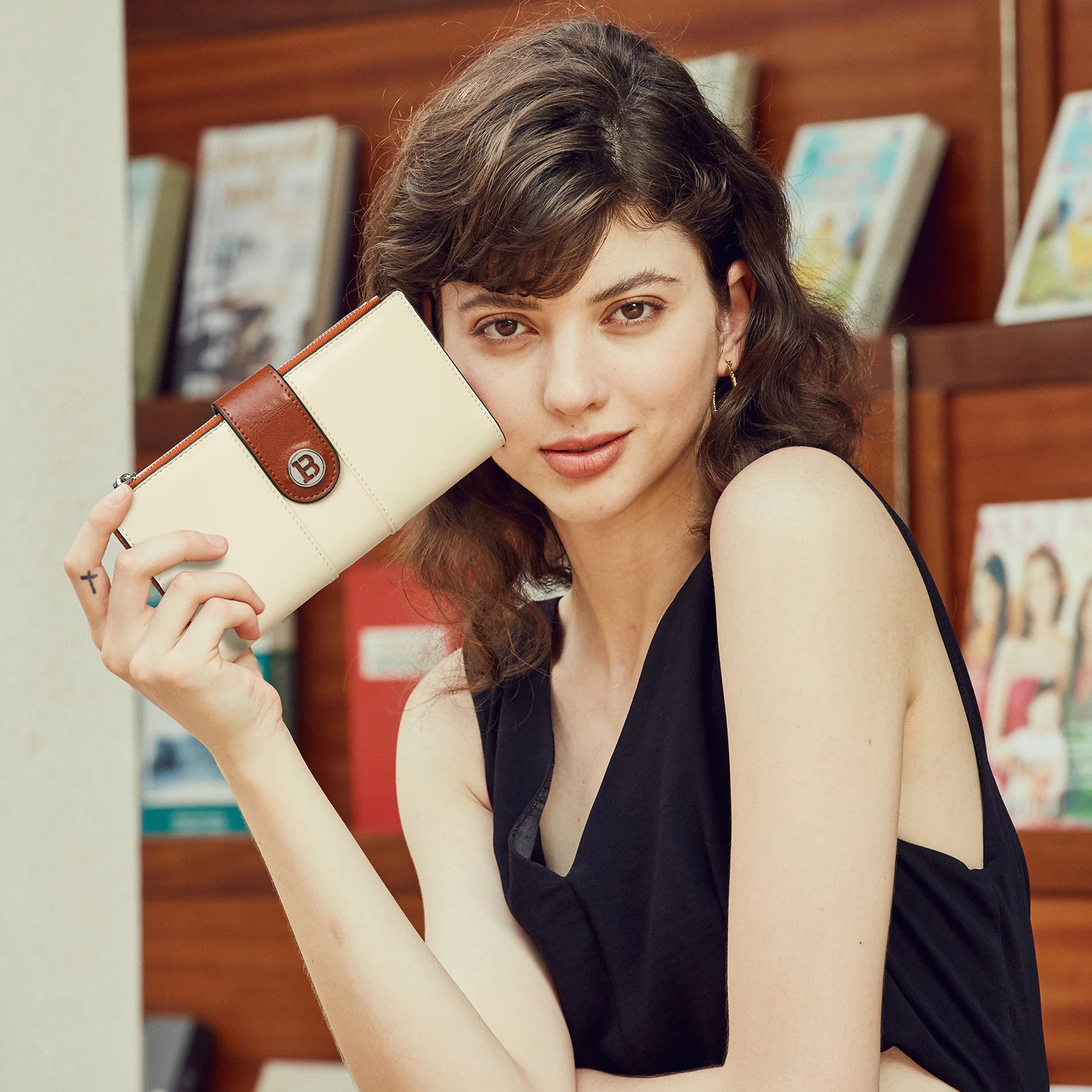 - ❖DESIGN & MATCH -- Double zipper design, more retro and advanced. Womens leather wallet design with a logo "B" metal snap and sturdy silver-like heavy duty zipper make the leather wallet more stylish and trendy. It is one of the most special gifts for Birthdays, Anniversaries, Mother's Day, Christmas and other Special Occasions.