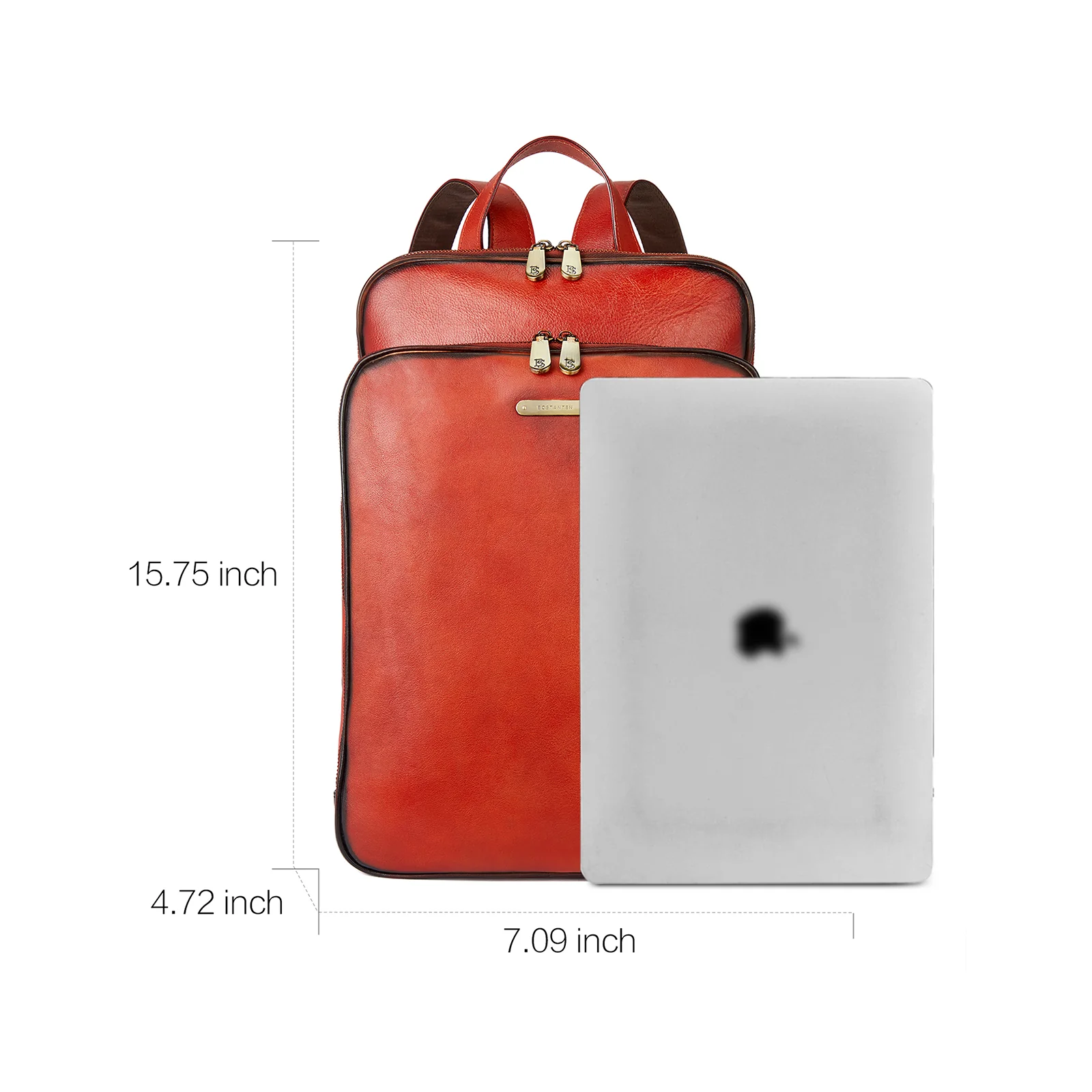 - Premuim Quality -- This women laptop backpack is handmade of the luxury material : Vegetable Tanned Full Grain Top Layer Genuine Leather and durable soft lining. Smooth U-zip allowed easy access. Adjustable straps are comfy that wouldn't dig into your shoulder.